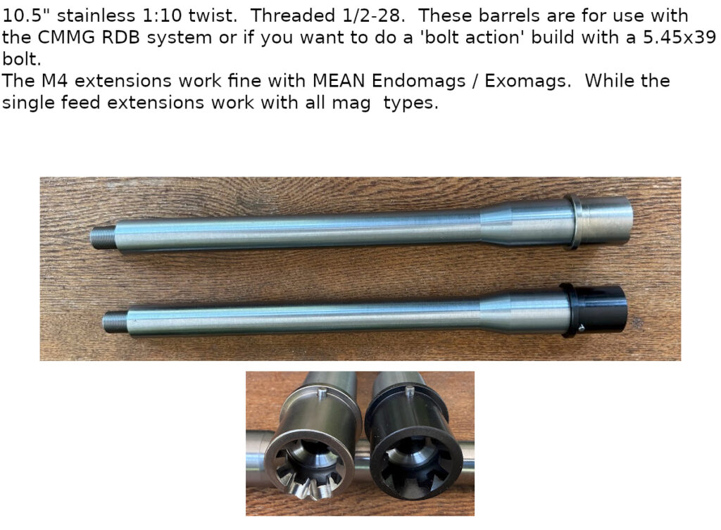 New 10.5″ CMMG RDB compatible barrel or for use with a ‘bolt action’ build